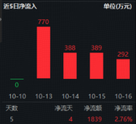 值得注意的是,自10月13日上市以来,近4个交易日,香港大盘30ETF(520560)资金面呈现出坚定的连续加仓态势,累计净买入超1800万元,净流率达2.7%!
